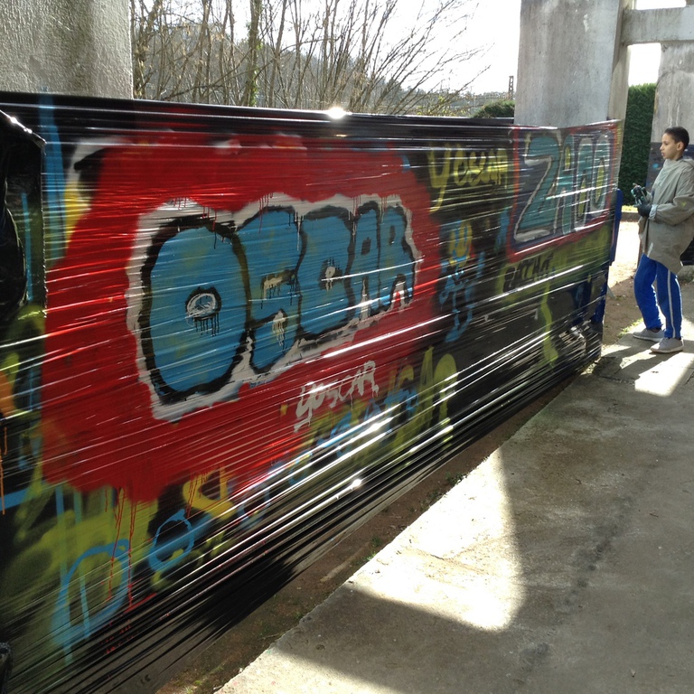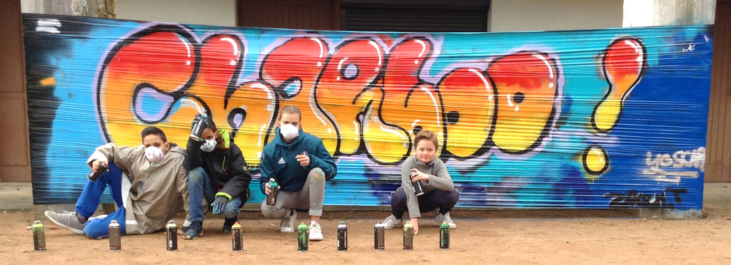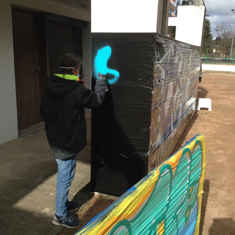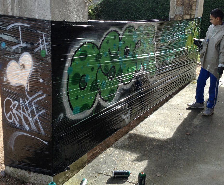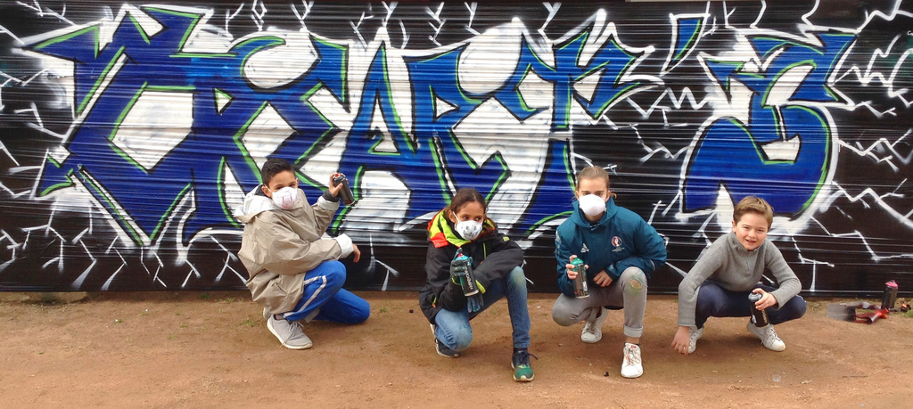 Découvre les techniques du graffiti sur mur ou sur toile géante.