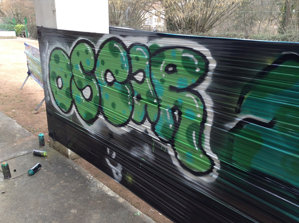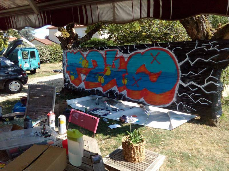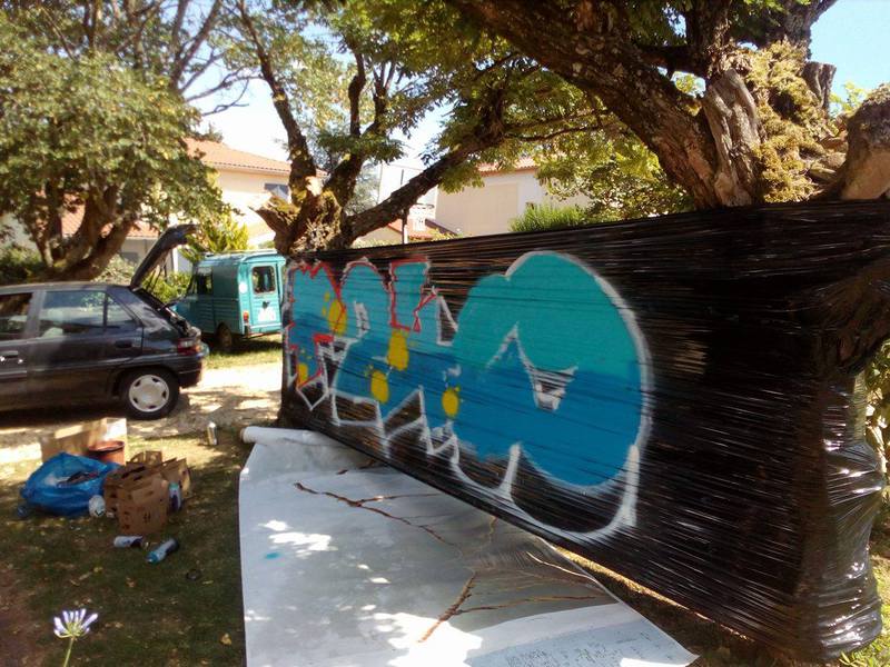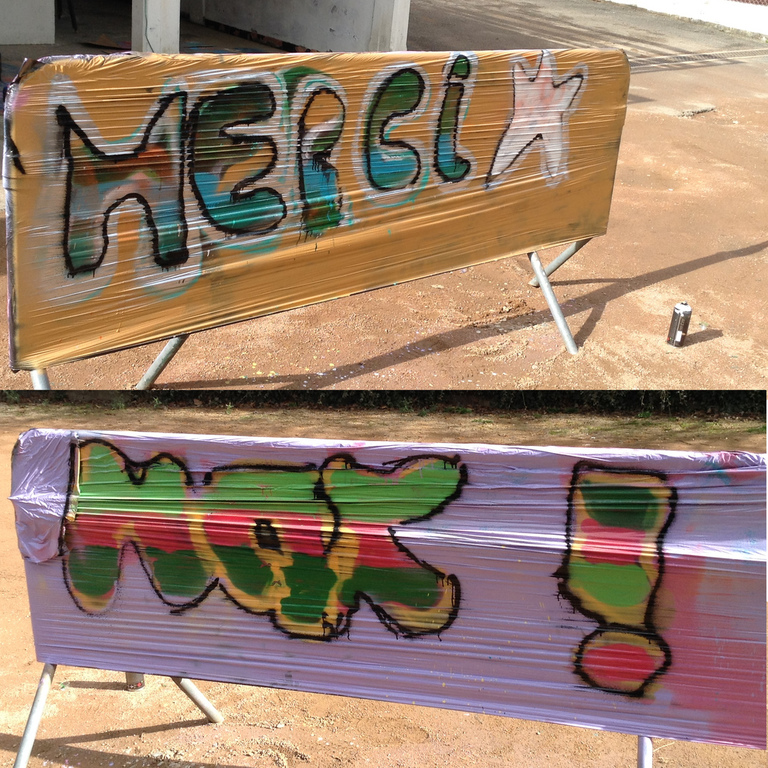 Nous travaillons essentiellement au marqueur, pastels, crayons... et un peu de bombes pour les sous-couches éventuelles.